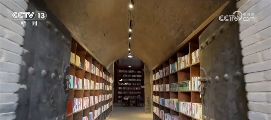 您現(xiàn)在看到的是河南孟州市莫溝村的老苗窯洞書館。2016年,村里將一處廢棄的窯洞改造建成了書館。古樸與現(xiàn)代交織的書館占地4000多平方米,藏書5萬多冊。自2016年建成以來,書館全年開放,每到節(jié)假日就幾乎坐滿了人。如今,書館已經(jīng)成了村民的精神家園。