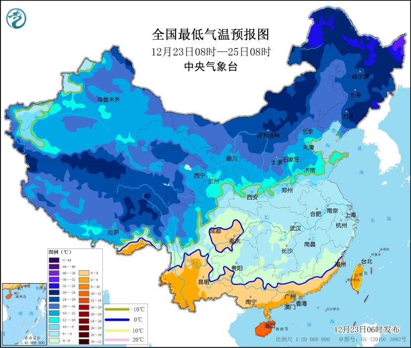中央氣象臺12月23日06時發(fā)布低溫藍色預警