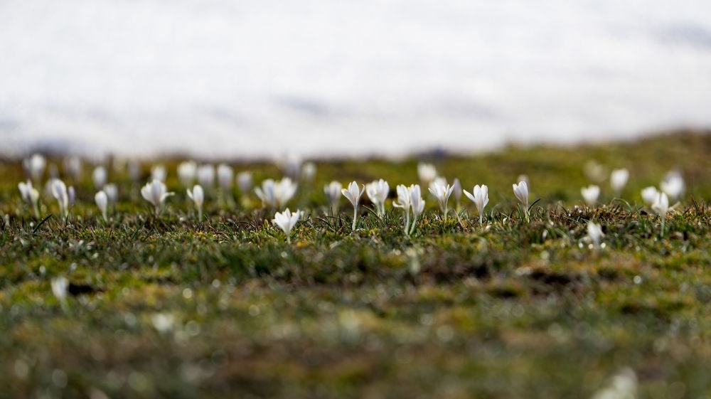 新疆那拉提草原上綻放的野百合(3月29日攝)。