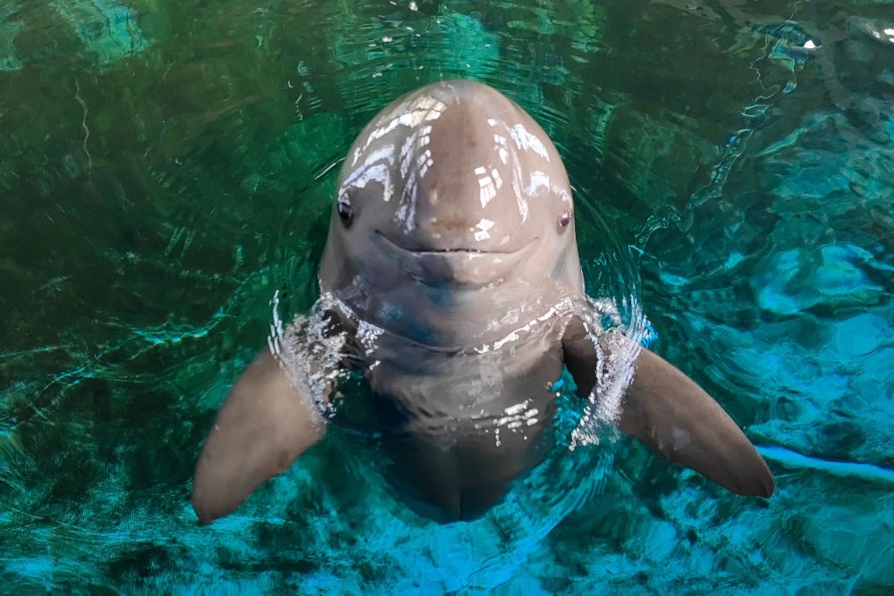 7月5日,在湖北武漢中科院水生所白鱀豚館,世界第一頭在全人工環(huán)境中成功繁育的長江江豚“淘淘”迎來18歲生日。