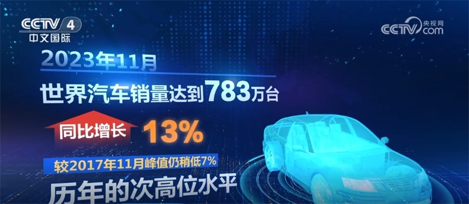 記者同時從全國乘用車市場信息聯(lián)席會了解到,2023年11月,世界汽車銷量達到783萬臺,同比增長13%,較2017年11月峰值仍稍低7%,處歷年的次高位水平。其中,中國車企的銷量占世界份額38%,今年1—11月的累計份額達到33%。