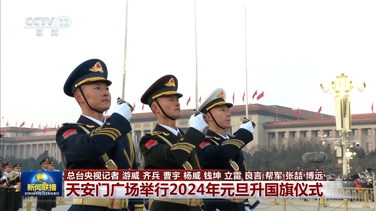 央視網(wǎng)消息(新聞聯(lián)播):2024年新年第一天,在北京天安門廣場舉行了隆重莊嚴的升國旗儀式。