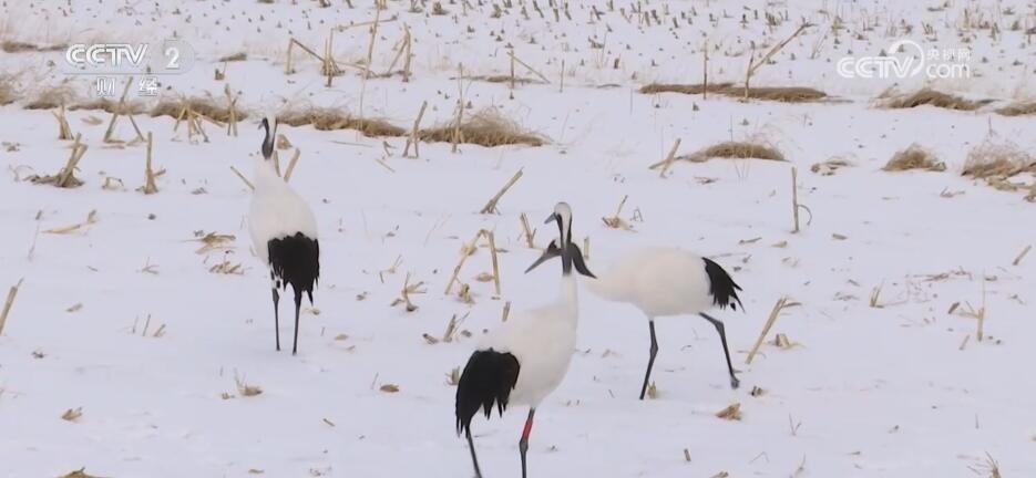 最近幾天,在內蒙古烏蘭察布市,村民們發(fā)現(xiàn)有3只丹頂鶴正在這里逗留越冬,這在以往很少見。