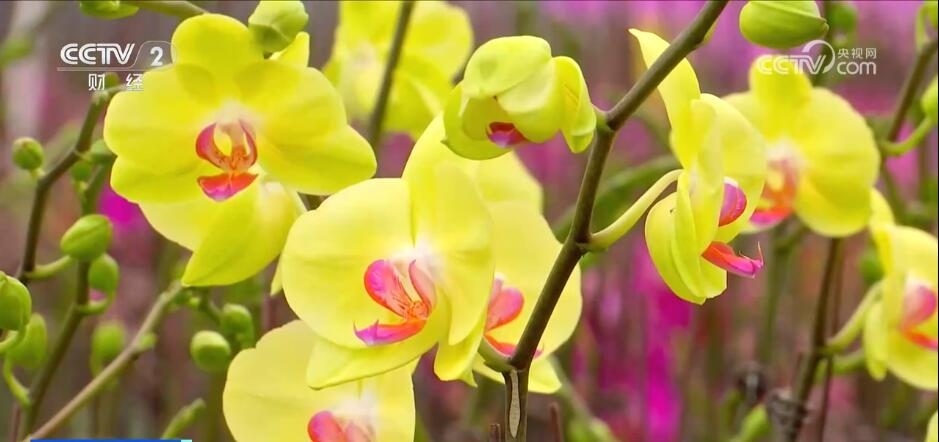 除了蝴蝶蘭,紅掌、鳳梨等花卉銷量也迎來增長,園藝師們澆水、培土、移盆、打包,將一批批花卉陸續(xù)發(fā)往全國各地。
