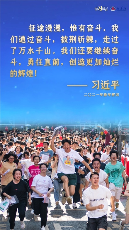 回顧近年來(lái)的新年賀詞,“奮斗”始終是醒目的關(guān)鍵詞。