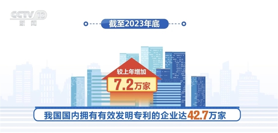 截至2023年年底,我國國內(nèi)擁有有效發(fā)明專利的企業(yè)達42.7萬家,較上年增加7.2萬家。國內(nèi)企業(yè)擁有有效發(fā)明專利290.9萬件,占比增至71.2%,首次超過七成,創(chuàng)新主體地位進一步凸顯。