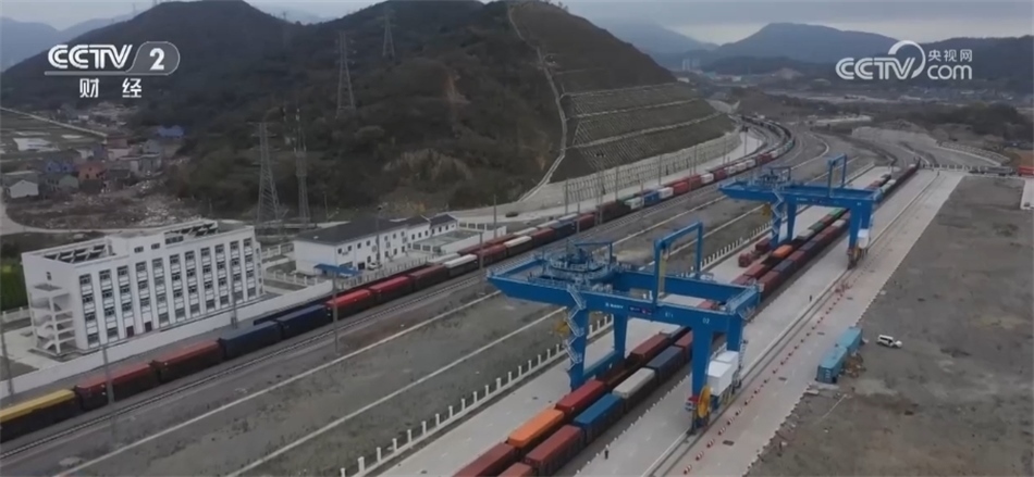 總臺(tái)央視記者 馬佳倫:這里是位于寧波舟山港北侖第一集裝箱碼頭的作業(yè)區(qū)。此刻一輛來(lái)自金華,載五十節(jié)車(chē)廂,共計(jì)100標(biāo)箱量的列車(chē)正在進(jìn)站。去年底甬金鐵路開(kāi)通運(yùn)營(yíng)以來(lái),寧波舟山港新增一條重要疏運(yùn)通道,世界第一大港寧波舟山港與世界小商品之都義烏(間)運(yùn)行效率大大提升。