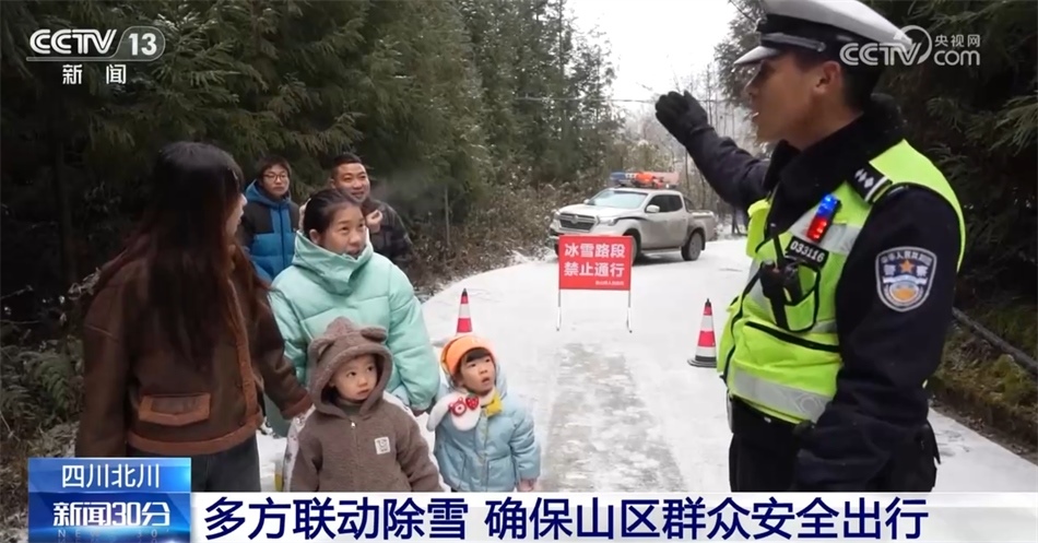 四川綿陽北川羌族自治縣近日迎來低溫降雪天氣,山區(qū)路段大范圍降雪和道路結(jié)冰現(xiàn)象明顯,為確保群眾往返交通順暢安全,當?shù)毓膊块T組織基層民警在重要路口設(shè)卡執(zhí)勤,維護交通秩序。交警在各路段有序開展除雪防滑作業(yè),清掃路面積雪和冰塊。