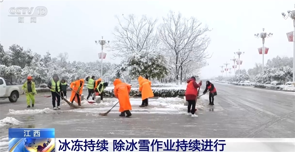 在江西,本輪降雪崇仁縣積雪深度最大,達21厘米,環(huán)衛(wèi)工人們正對易積雪結(jié)冰的主要交通路段進行重點清掃。