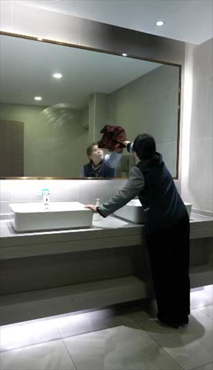 王柳云的保潔面積很大,整個(gè)寫字樓的十五層和十七層,地板、桌椅、窗戶、衛(wèi)生間,都是她的職責(zé)范圍?!昂芏嗳艘婚_(kāi)完會(huì),杯子、椅子、桌子要清理,還有窗子全部要擦干凈”,她形容自己的工作量“三四個(gè)人都干不完”,但她看中了這份工作留給她的一隅,隨便找個(gè)角落就可以寫字畫畫。