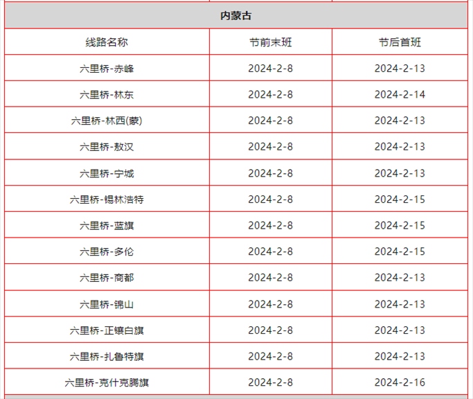 北京六里橋客運(yùn)主樞紐春節(jié)運(yùn)營安排發(fā)布,具體如下: