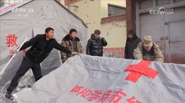甘肅省臨夏州積石山縣石塬鎮(zhèn)振興社區(qū)副主任孔德義:“他發(fā)揮的作用特別大,因?yàn)樗吘故遣筷?duì)出身,身體素質(zhì)好,搭帳篷這一塊特別強(qiáng)。有他在的話,5分鐘就能完成一個(gè),效率特別高。還有像如何規(guī)避余震帶來(lái)的傷害,他先給先鋒隊(duì)講解,我們?cè)僦饌€(gè)分散開給群眾講解,等同于一個(gè)專業(yè)人士帶領(lǐng)著先鋒隊(duì)去幫助更多的群眾,去服務(wù)群眾?!?/p>