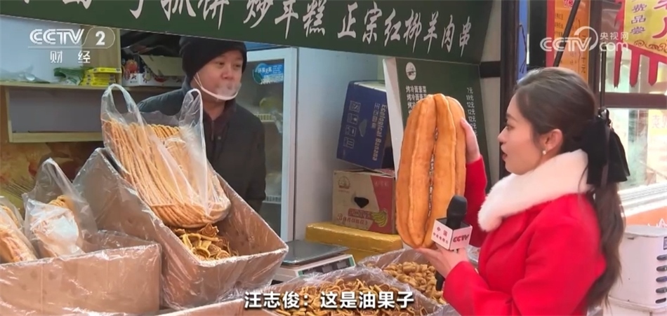 總臺(tái)記者 馬雅慧:今天一來(lái)到這里我就聞到了濃濃的香料味兒,大家看我身旁的這些都是青海特色的油炸年饃,當(dāng)?shù)厝艘步杏驼ü?。老板,我看這里款式各式各樣的都有,您能給我們介紹一下嗎?