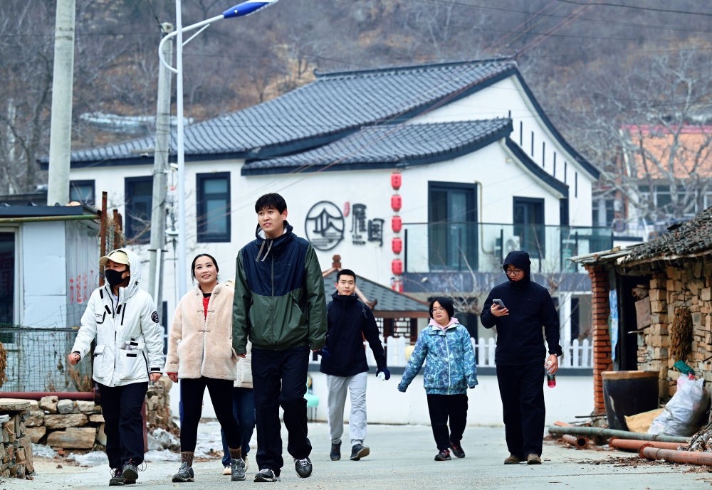 2024年1月30日,游客在天津市薊州區(qū)下營鎮(zhèn)前干澗村游玩。新華社記者 趙子碩 攝