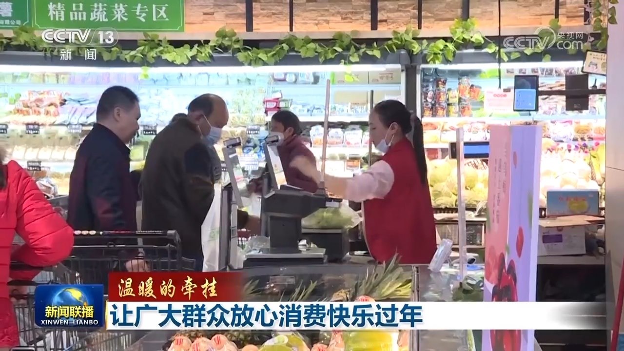 央視網(wǎng)消息(新聞聯(lián)播):春節(jié)是中國最重要的傳統(tǒng)節(jié)日。習近平總書記在天津考察時強調(diào),各級黨委和政府要加強節(jié)日期間民生商品的產(chǎn)銷保供,確保數(shù)量充足、品類豐富、質(zhì)量可靠,讓廣大群眾放心消費、快樂過年。春節(jié)前夕,從中央到地方,多措并舉,保障春節(jié)期間市場供應,穩(wěn)定消費市場價格,節(jié)日市場貨品豐富,供應充足。