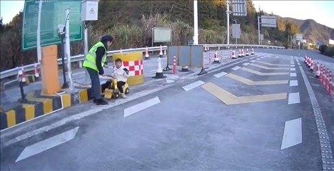 ·5歲男孩開電動(dòng)玩具車上高速,被收費(fèi)員及時(shí)發(fā)現(xiàn)。