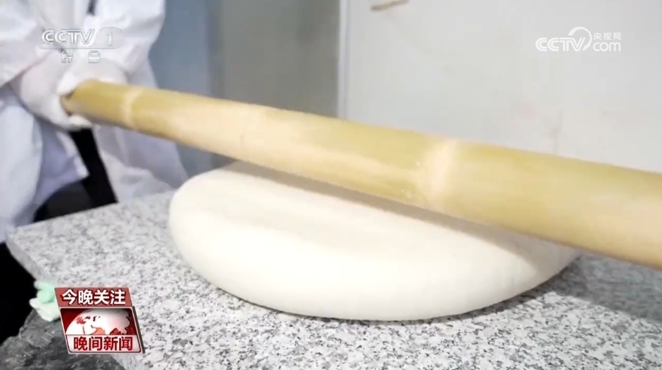 浙江省新昌縣日進年糕加工廠負責人 王攀:我們用到的是定制的石頭和石臼,比如說石錘的大小、粗細、重量各方面都是精確計算。搗制工藝又是傳統(tǒng)的,所以這是保持它原風味最重要的東西。