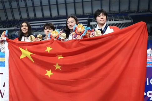 北京時間2月16日凌晨,在2024世界游泳錦標賽女子4×200米自由泳接力決賽中,由艾衍含、龔真琦、李冰潔和楊佩琪組成的中國隊以7分47秒26的成績奪冠。