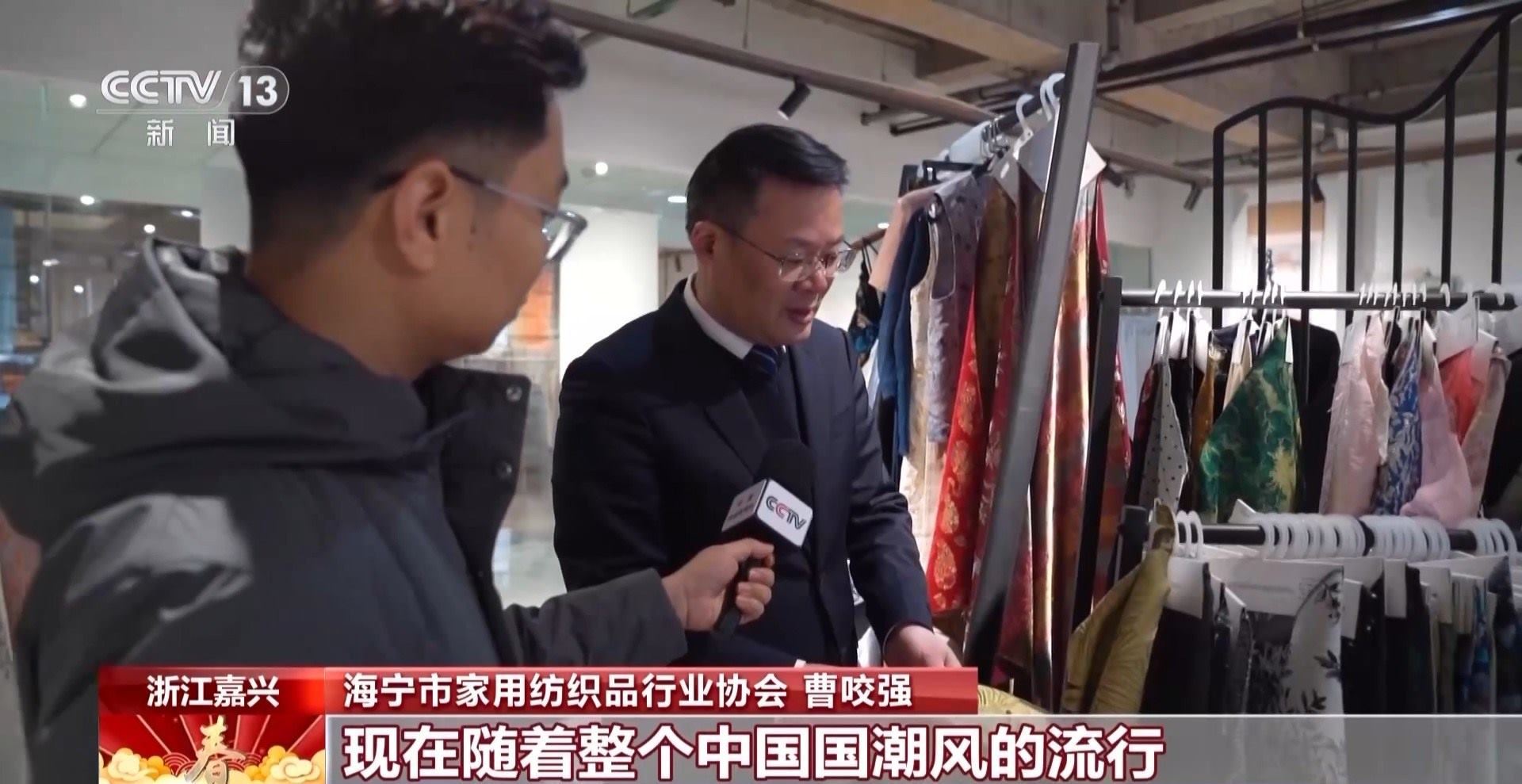 海寧市家用紡織品行業(yè)協(xié)會 曹咬強:這款面料主要是供應在意大利市場上,這個色系的面料主要供應在美國市場上?,F(xiàn)在隨著整個中國國潮風的流行,特別是在東南亞市場,他們每次下訂單都是60萬米、80萬米。