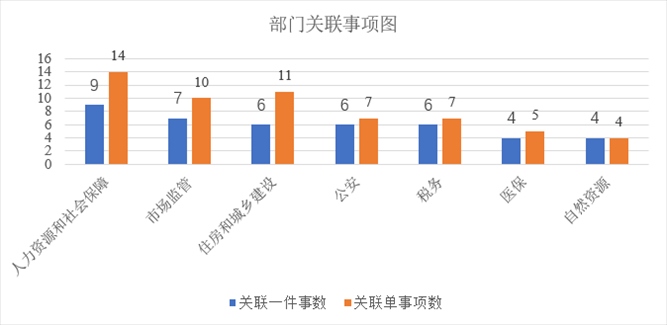 此次新推出第一批13個(gè)重點(diǎn)事項(xiàng)清單,涉及人力資源社會(huì)保障、市場監(jiān)管局、住房城鄉(xiāng)建設(shè)等10個(gè)牽頭部門,以及27個(gè)責(zé)任部門和水電氣網(wǎng)等相關(guān)單位。其中,人力資源和社會(huì)保障部門關(guān)聯(lián)9個(gè)“一件事”中14個(gè)事項(xiàng);市場監(jiān)管部門關(guān)聯(lián)7個(gè)“一件事”中10個(gè)事項(xiàng);住房和城鄉(xiāng)建設(shè)部門關(guān)聯(lián)6個(gè)“一件事”中11個(gè)事項(xiàng);公安部門關(guān)聯(lián)6個(gè)“一件事”中7個(gè)事項(xiàng);稅務(wù)部門關(guān)聯(lián)4個(gè)“一件事”中6個(gè)事項(xiàng);醫(yī)保部門關(guān)聯(lián)4個(gè)“一件事”中5個(gè)事項(xiàng);自然資源部門關(guān)聯(lián)4個(gè)“一件事”中4個(gè)事項(xiàng)。