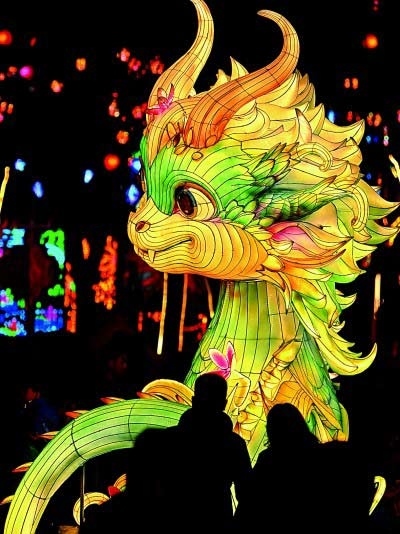 除了年味十足的廟會,燦爛奪目的燈會也備受游客青睞。流光溢彩的花燈令很多市民游客流連忘返。近幾年,彩燈技術(shù)不斷更新,迎春燈會與國風(fēng)潮流、地域文化、年節(jié)文化、科技元素結(jié)合起來,充滿創(chuàng)新創(chuàng)意和人文氣息。