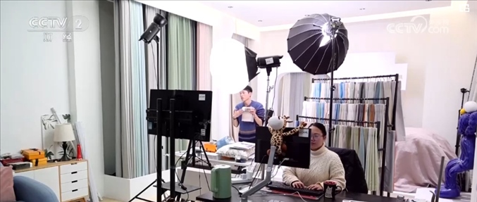 在當?shù)亓硪患移髽I(yè)的直播間內(nèi),主播們正在嫻熟地介紹公司的窗簾產(chǎn)品。近年來,公司發(fā)力網(wǎng)絡直播業(yè)務,線上訂單逐年增長,目前已經(jīng)占到了公司整體銷售額約65%。