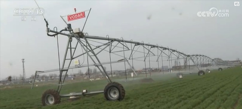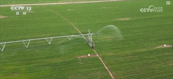 根據(jù)農(nóng)業(yè)專家的精準(zhǔn)測算和調(diào)度,園區(qū)工作人員啟動了大型指針式噴灌機。