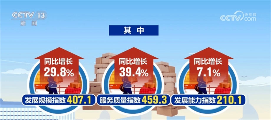 央視網(wǎng)消息:3月15日,國家郵政局發(fā)布2024年1—2月中國快遞發(fā)展指數(shù)報(bào)告,1—2月中國快遞發(fā)展指數(shù)同比提升26.7%??爝f發(fā)展指數(shù)評價采用指數(shù)評價方法,以2016年3月為基期,基期值設(shè)定為100。整個指標(biāo)體系包括發(fā)展規(guī)模、服務(wù)質(zhì)量、發(fā)展能力和發(fā)展趨勢等4個一級指標(biāo)和11個二級指標(biāo)。指數(shù)反映出,今年1—2月,快遞業(yè)實(shí)現(xiàn)良好開局,市場規(guī)模快速增長。