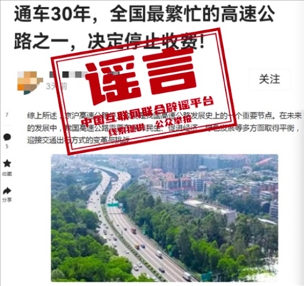 ·有網(wǎng)民稱“京滬高速公路停止收費”,有關(guān)部門辟謠。