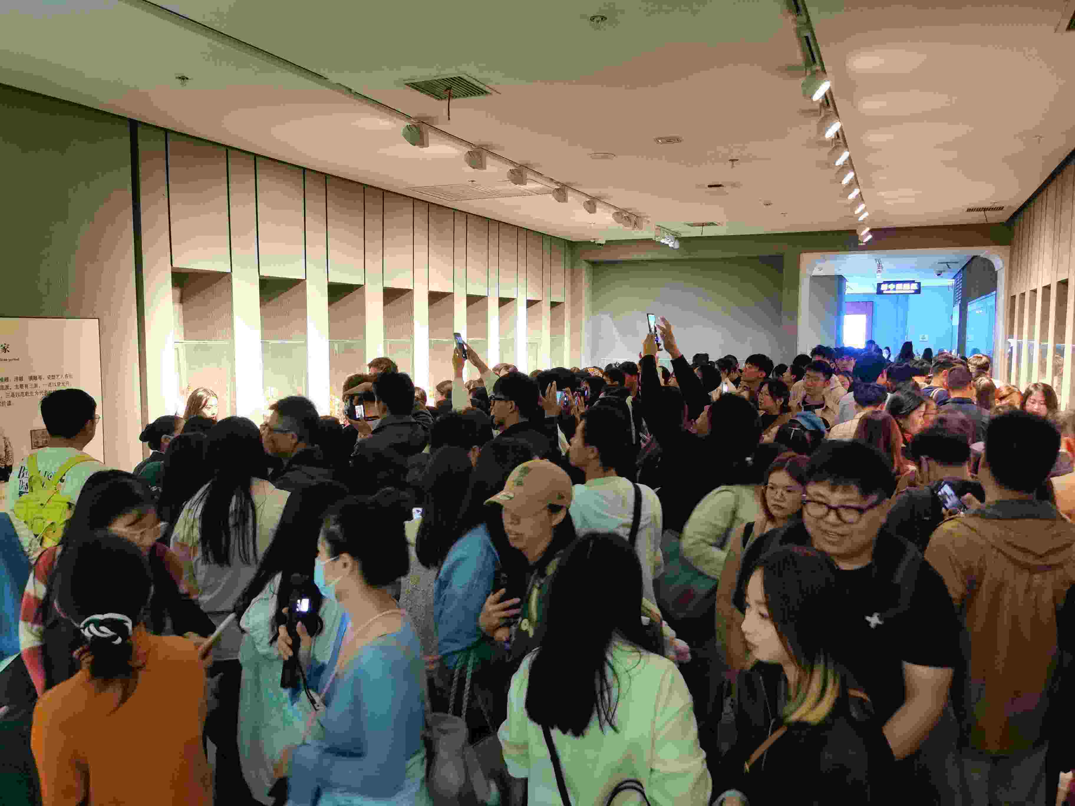 張女士提供的照片顯示,4月5日位于景德鎮(zhèn)的中國(guó)陶瓷博物館人流密集,在網(wǎng)紅展品“無(wú)語(yǔ)羅漢”陶瓷雕塑前拍照“打卡”的游客摩肩接踵。