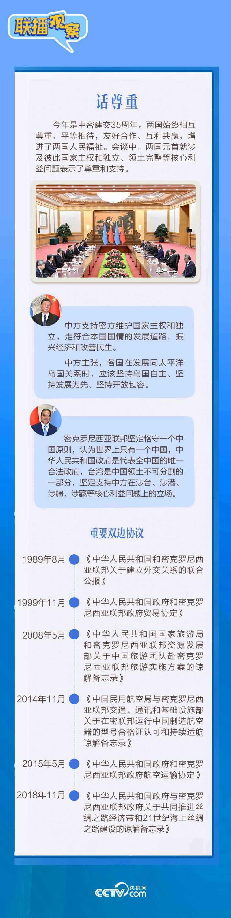 應(yīng)習(xí)近平主席邀請,密克羅尼西亞聯(lián)邦總統(tǒng)韋斯利·西米納于4月5日至12日對中國進行國事訪問。4月9日下午,習(xí)近平主席在北京人民大會堂同西米納總統(tǒng)舉行會談,就雙邊關(guān)系發(fā)展及共同關(guān)心的問題深入交換意見。雙方會談哪些細節(jié)值得關(guān)注?央視網(wǎng)《聯(lián)播觀察》帶您了解。