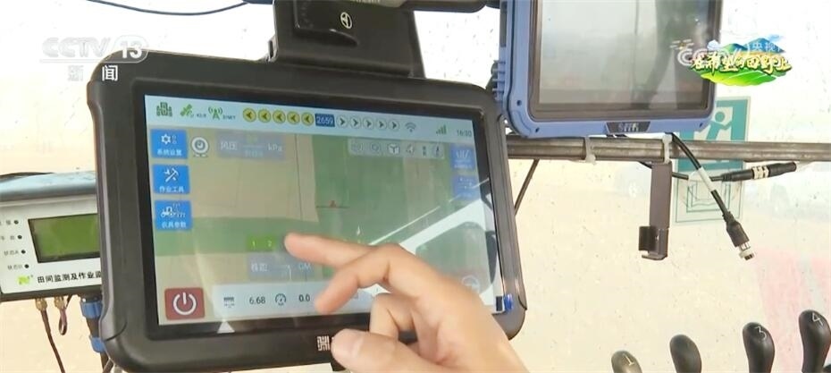 記者看到,播種機(jī)上有幾塊顯示屏,其中一塊顯示屏可以通過北斗導(dǎo)航對整個(gè)農(nóng)機(jī)的駕駛速度進(jìn)行有效控制,能夠保證播下去的種子株間距更加均勻,而且還能夠準(zhǔn)確、不漏種。