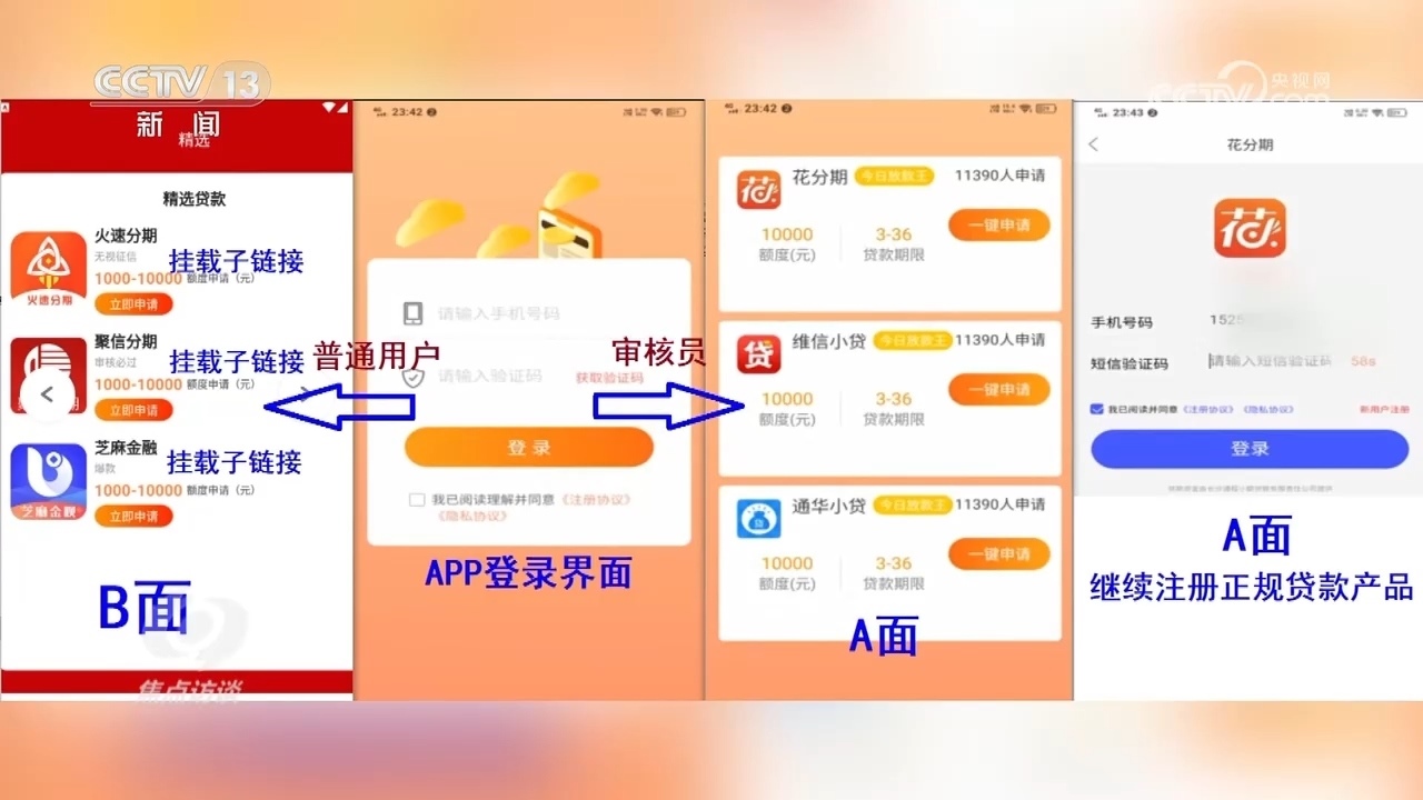 安徽省蕪湖市公安局經開區(qū)分局偵查打擊部警務技術二級主管高陽:“提供審核的都是正規(guī)的貸款產品,點擊以后一步一步看起來都很正規(guī),這樣審核員就會通過,覺得這個APP是正常的,可以在官方應用商城上架。但是普通用戶登錄以后,就會下載新的APP,新的APP都是詐騙APP?!?/p>