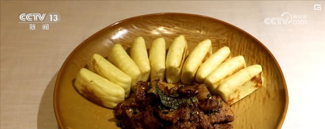 不僅僅是氛圍的打造,菜品創(chuàng)意也在還原原著中十二道菜品的基礎(chǔ)上,再對其進行創(chuàng)新和延伸, “可卿山藥棗泥糕”“鳳姐火腿肘子”“寶釵胭脂鵝”等獨具紅樓特色的菜品,都可以在這里吃到。這朵以假亂真的花朵是這里的一道招牌菜,由魚茸制作而成的“黛玉傳花”,來自上海的房阿姨對這道菜尤為喜愛。