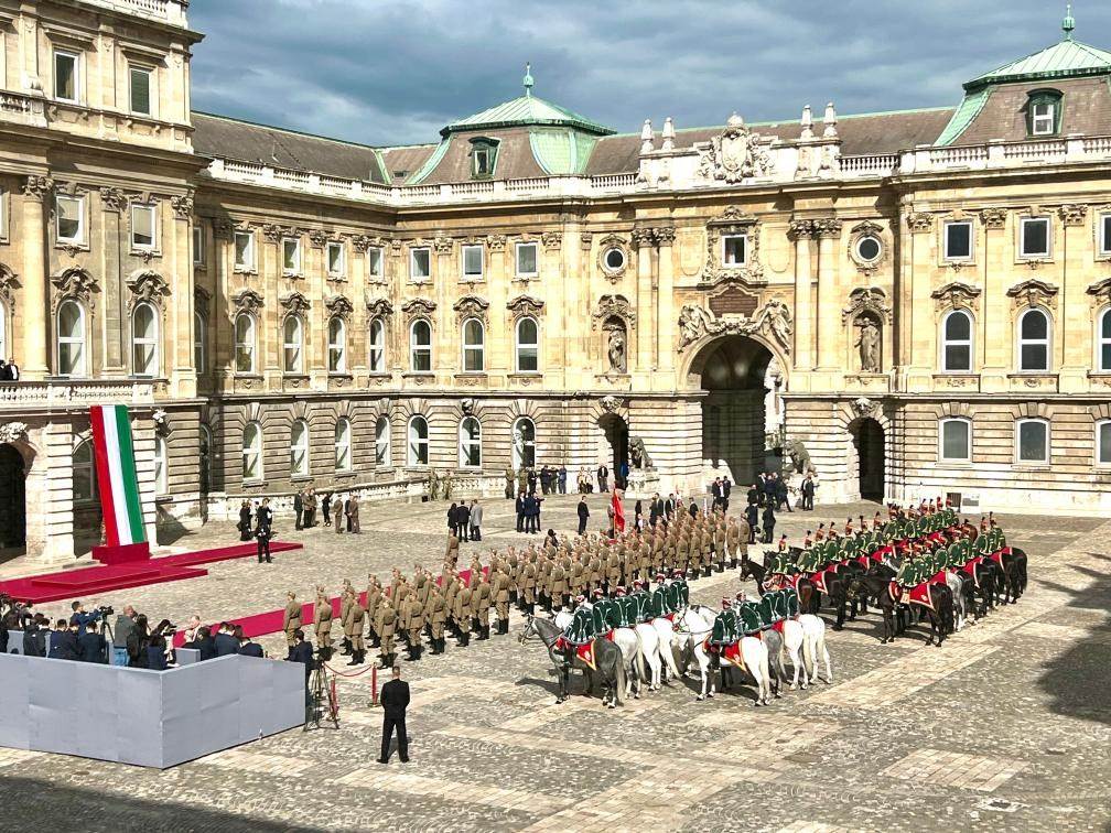 當(dāng)?shù)貢r(shí)間5月9日上午,國家主席習(xí)近平在布達(dá)佩斯出席匈牙利總統(tǒng)舒尤克和總理歐爾班共同舉行的隆重歡迎儀式。習(xí)近平在舒尤克陪同下檢閱國防軍儀仗隊(duì)和騎兵儀仗隊(duì)。