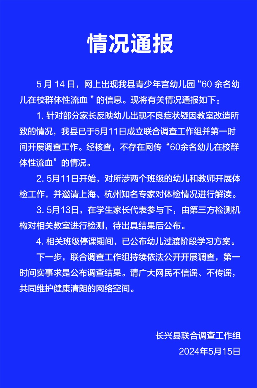 ·60余名幼兒在校群體性流血?浙江長興辟謠:不存在相關(guān)情況。
