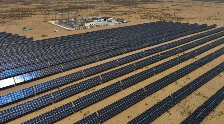 烏蘭布和沙漠總面積1500多萬畝,沙漠治理將大規(guī)模采用“板上發(fā)電、板下種植、治沙改土、帶動鄉(xiāng)村振興”四位一體產(chǎn)業(yè)發(fā)展模式,努力把沙海變?yōu)椤熬G?!?。