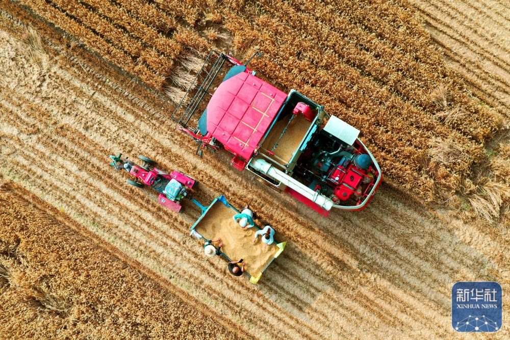 5月26日,河南省鄧州市文渠鎮(zhèn)肖店村村民在收獲小麥。新華社記者 李嘉南 攝