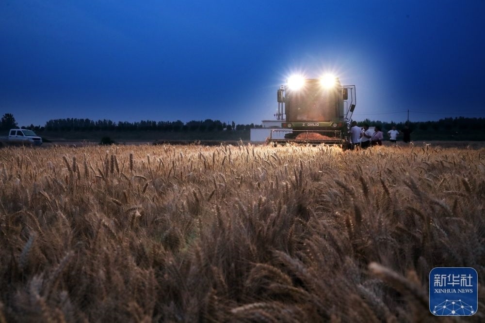 5月25日,河南省周口市商水縣湯莊鄉(xiāng)吳樓村村民在搶收小麥。新華社發(fā)(高建中攝)