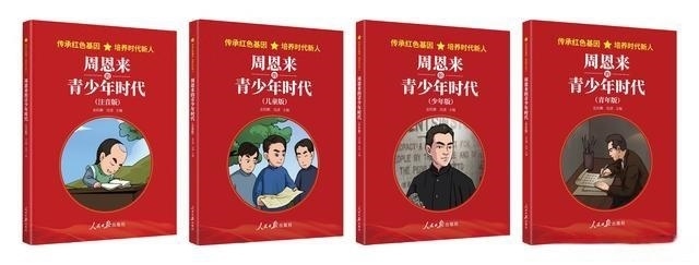 根據中共中央辦公廳印發(fā)的《關于推動黨史學習教育常態(tài)化長效化的意見》,以及教育部辦公廳印發(fā)的《關于在思政課中加強以黨史教育為重點的“四史”教育的通知》,2020年,在人民日報社副總編輯方江山的策劃和支持下,出版社約請時任中國社會科學院近代史所黨委書記金民卿和周恩來侄外孫、北京大鸞翔宇慈善基金會理事長沈清,主編“傳承紅色基因,培養(yǎng)時代新人”叢書。該叢書首批圖書包括《毛澤東的青少年時代》《周恩來的青少年時代》,書中截取了毛澤東、周恩來青少年時期的光輝片段,講述其成長、學習經歷和積極投身革命的艱辛歷程。同時,考慮到不同年齡段學生的閱讀水平,又將圖書分為注音版、兒童版、少年版、青年版四個版本,用青少年喜聞樂見的方式,采取圖文并茂的形式,引導廣大青少年從小在心里深植紅色基因,樹立紅色理想。