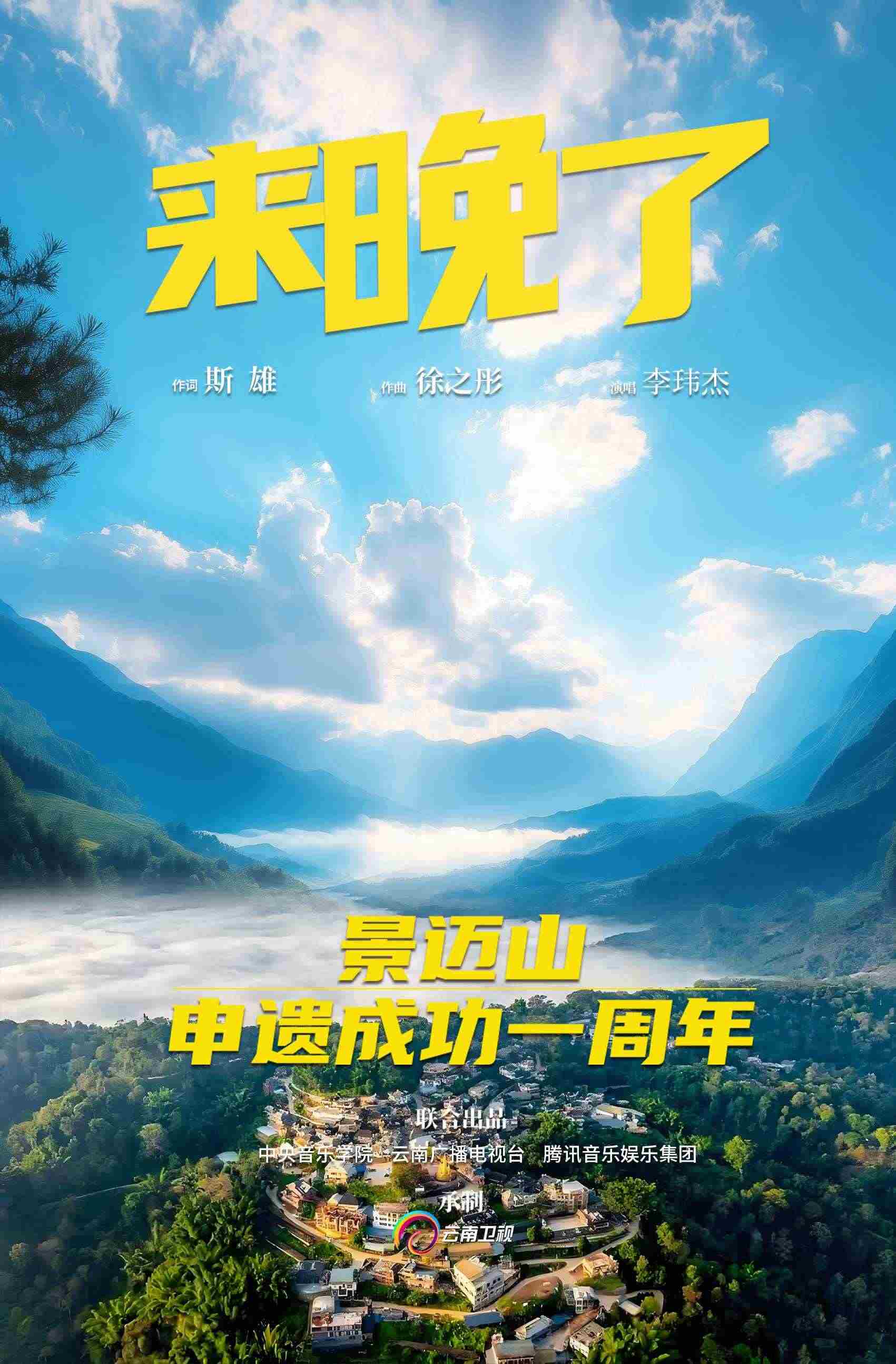 為慶祝景邁山申遺成功一周年,實(shí)景版MV《來(lái)晚了》上線啦!實(shí)景版歌曲由資深媒體人斯雄作詞,中央音樂(lè)學(xué)院徐之彤教授作曲,云南音樂(lè)人李瑋杰演唱。中央音樂(lè)學(xué)院、云南廣播電視臺(tái)、騰訊音樂(lè)娛樂(lè)集團(tuán)聯(lián)合出品,云南衛(wèi)視承制。