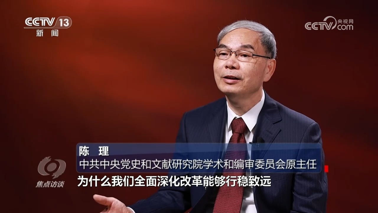 中共中央黨史和文獻研究院學術(shù)和編審委員會原主任陳理:“回過頭來看十多年的全面深化改革,就看得非常清楚。為什么全面深化改革能夠行穩(wěn)致遠,能夠始終沿著正確的方向進行,能取得今天這樣的歷史性偉大成就?原因有很多條,其中首要的、最根本、最重要的第一條,是堅持黨對全面深化改革的統(tǒng)一領(lǐng)導。”