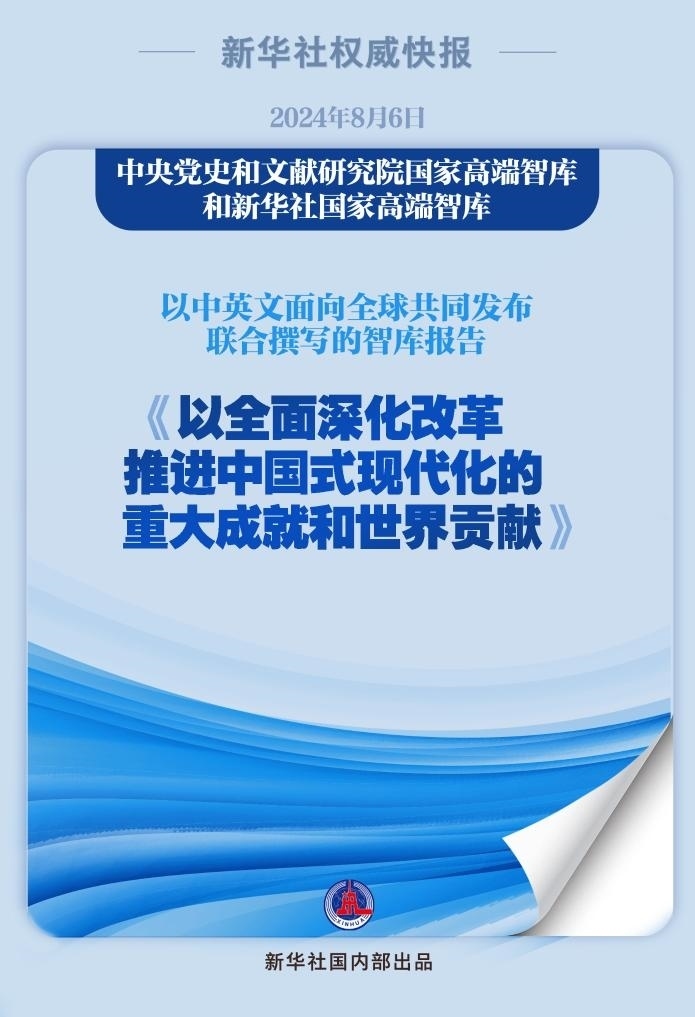 “紅廳論壇:讀懂中國(guó)共產(chǎn)黨二十屆三中全會(huì)”主題研討會(huì)8月6日在中國(guó)共產(chǎn)黨歷史展覽館紅色大廳舉行。會(huì)上,中央黨史和文獻(xiàn)研究院國(guó)家高端智庫和新華社國(guó)家高端智庫以中英文面向全球共同發(fā)布聯(lián)合撰寫的智庫報(bào)告《以全面深化改革推進(jìn)中國(guó)式現(xiàn)代化的重大成就和世界貢獻(xiàn)》。