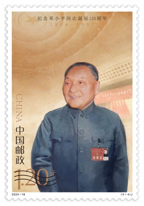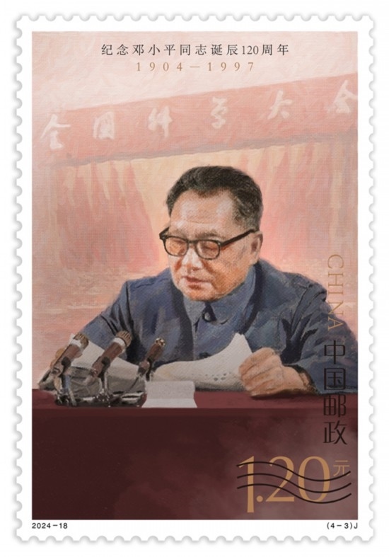中國郵政定于8月22日發(fā)行《紀(jì)念鄧小平同志誕辰120周年》紀(jì)念郵票1套4枚,郵票圖案名稱為勤工儉學(xué)、戎馬歲月、科學(xué)春天、改革開放。