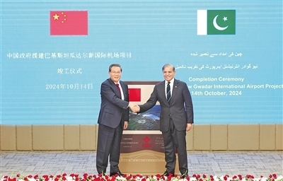 本報(bào)伊斯蘭堡10月14日電 (記者陳尚文、程是頡)當(dāng)?shù)貢r(shí)間10月14日,國(guó)務(wù)院總理李強(qiáng)在巴基斯坦總理府同巴基斯坦總理夏巴茲共同出席瓜達(dá)爾新國(guó)際機(jī)場(chǎng)項(xiàng)目竣工儀式。