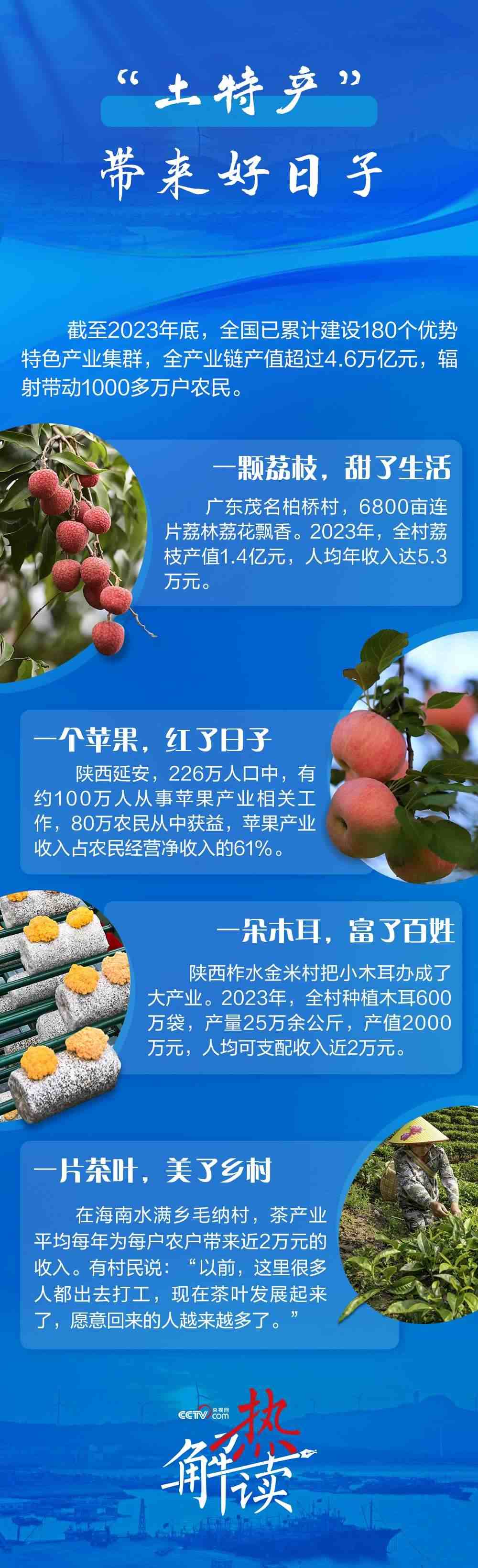放眼廣袤鄉(xiāng)村,特色產(chǎn)業(yè)“百花齊放”。一個個“土特產(chǎn)”變成鄉(xiāng)親們增收致富的大產(chǎn)業(yè),匯聚成鄉(xiāng)村全面振興扎實推進(jìn)的新圖景。