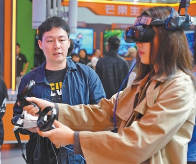 2024中國新媒體技術展上,參觀者在進行AR互動體驗。人民網(wǎng)記者 吳茜薇攝