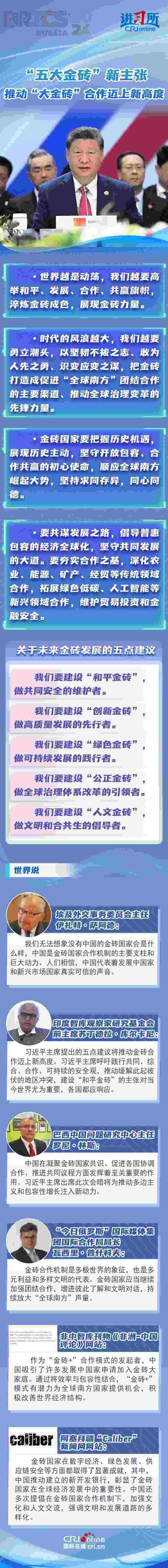 “時代的風浪越大,我們越要勇立潮頭,以堅韌不拔之志、敢為人先之勇、識變應變之謀,把金磚打造成促進‘全球南方’團結合作的主要渠道、推動全球治理變革的先鋒力量?!碑?shù)貢r間10月23日,習近平主席在俄羅斯喀山出席金磚國家領導人第十六次會晤并發(fā)表重要講話,提出共建“和平金磚”“創(chuàng)新金磚”“綠色金磚”“公正金磚”“人文金磚”,為“大金磚合作”擘畫藍圖。
