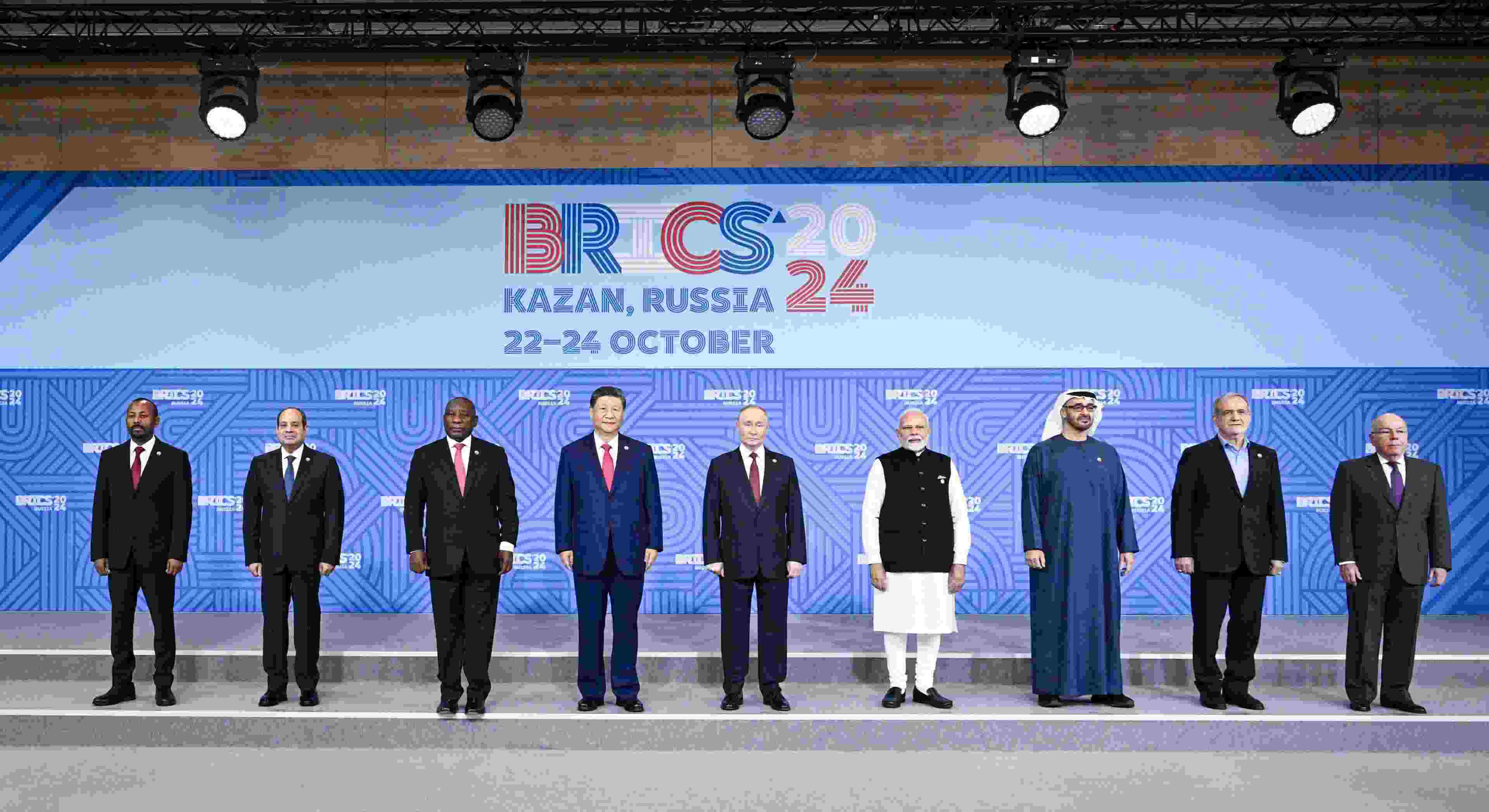 △當(dāng)?shù)貢r間2024年10月24日上午,國家主席習(xí)近平在喀山會展中心出席金磚成員國、嘉賓國領(lǐng)導(dǎo)人和國際組織負(fù)責(zé)人集體合影。