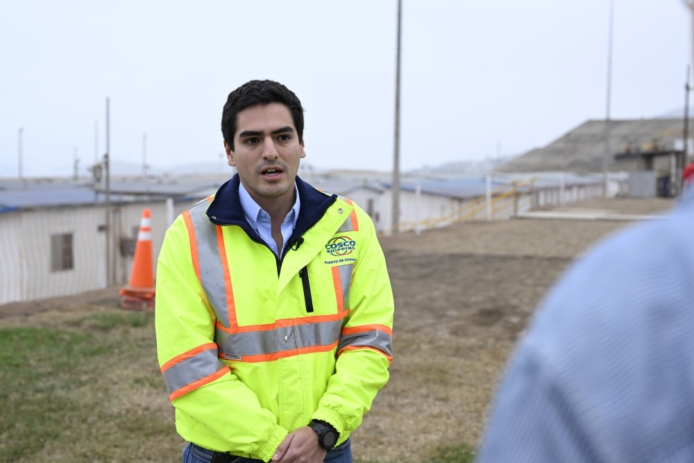 2024年6月21日,秘魯青年丹尼爾·哈雷斯在錢凱港項(xiàng)目現(xiàn)場(chǎng)接受媒體采訪。項(xiàng)目啟動(dòng)之初,丹尼爾·哈雷斯還是一名剛?cè)肼殘?chǎng)的實(shí)習(xí)生,如今27歲的他已成長為項(xiàng)目工程部合同管理員。隨著錢凱港建設(shè)不斷推進(jìn),項(xiàng)目的工作崗位在當(dāng)?shù)爻蔀槟贻p人就業(yè)的熱門選項(xiàng)。